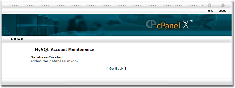 Click "Go Back". Somewhere on that page, you should see your newly created database. Write down the name of the database, as it appears. It may be prefixed with your account name.