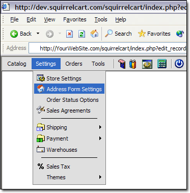 The "Address Form Settings" page controls which fields will be displayed on your address forms.