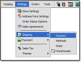 If you are unsure how to work with records, see the "Working With Records" section of the documentation. To get to the Shipping Courier records, click the "Settings > Shipping > Couriers" link: