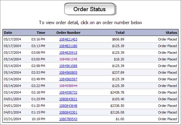 This template describes the templates used to generate the order status page, which is seen when clicking on the "Order Status" link in the "Account Options" nav box.