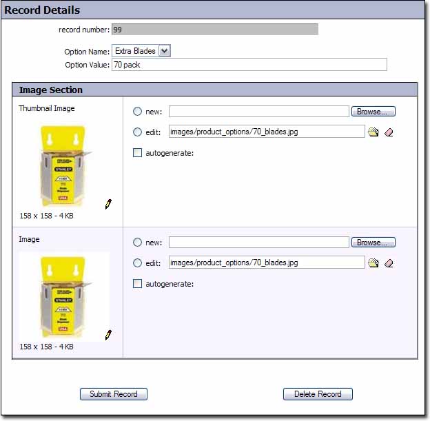 Product options actually have 2 types of records that control them. Both are discussed below.