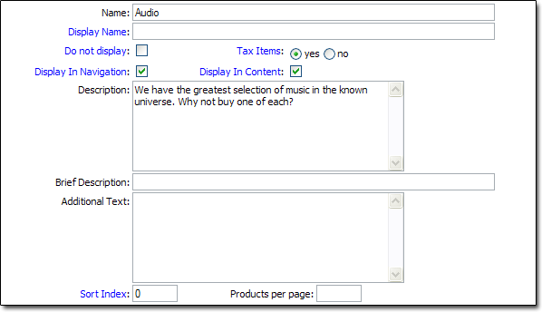 - An extra field to add more information about the category. This does not appear anywhere in your storefront by default.