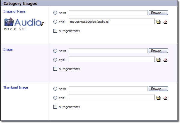 - This is the main image for the category. When specified, it will appear to the left of the category name in the main content area of your storefront.