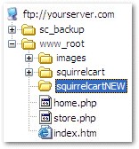 Upload the contents of "squirrelcart" from the distribution to the "squirrelcartNEW" folder.