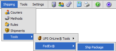 Method 3: Click the Ship Package menu link for FedEx: