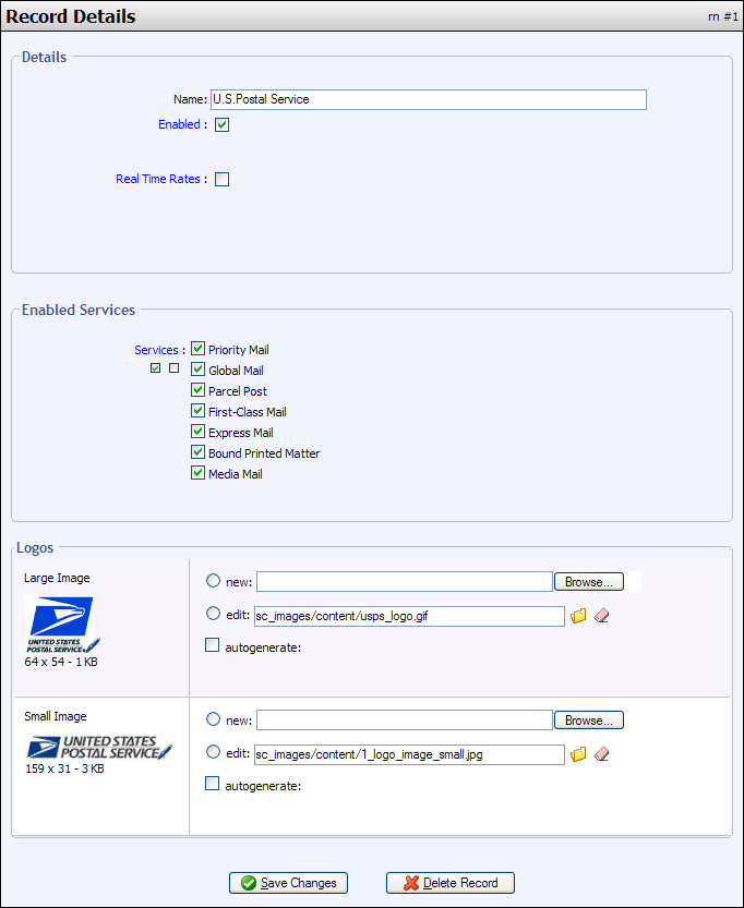 Some of the built in Shipping Courier records have special fields associated with Real Time Rates. We will not discuss those fields here. They will be explained in the Real Time Rates section.