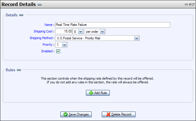 This field controls whether or not the rule will be enabled, and can be unchecked to temporarily disable a shipping rule.