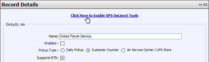 You can set the manner in which your packages are picked up using the UPS Pickup Type field on the UPS shipping courier record.