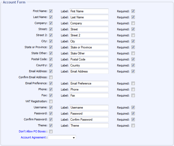 The Address Agreement field allows you to assign an agreement that will appear on the address form during checkout. See the Sales Agreement topic for more information.