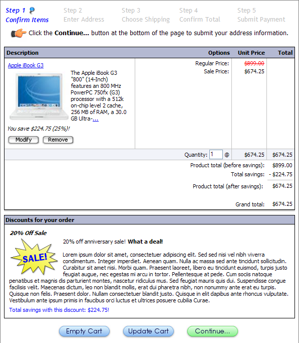 If advertising is enabled for a discount, it will appear on the product's detail page in your storefront, as in this example: