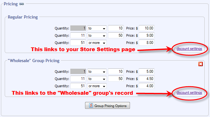 This example will explain how to setup quantity based discounts for your regular customers similar to the table shown above labeled Regular Pricing. This example assumes that the regular price for this product is $10.00.