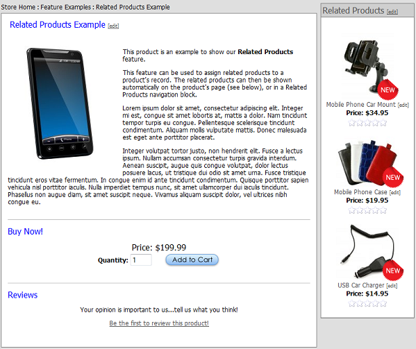The Related Products feature allows you to associated related products to a product. Those related products can then be shown to your customer when they view the product's page in your store.