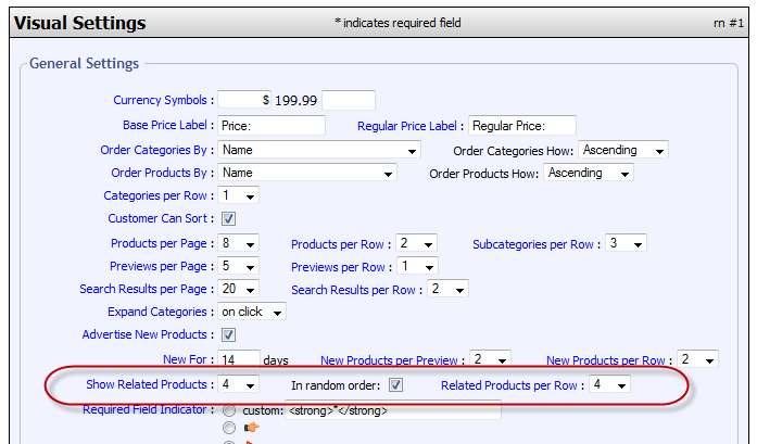 When using this method, you can control how many related products appear in total, how many appear per row, and whether or not they appear in random order. You can find settings for that on the Visual Settings page of the control panel: