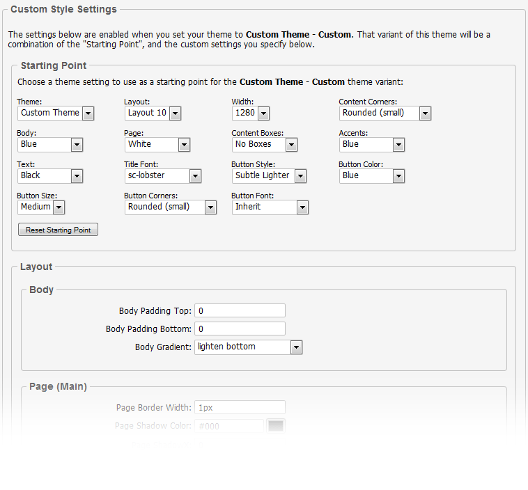 This section will only appear when you are viewing the Squirrelcart master theme record, any theme that is using the Squirrelcart theme's stylesheets, or a special theme that was created using INI config files.