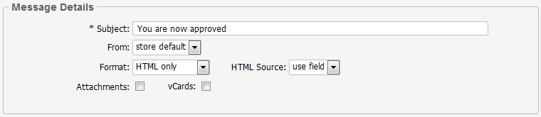 Subject of the email. Variables may be used in this field. See the variable guide in this section for more info.
