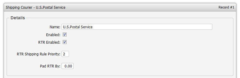 Some of the built in Shipping Courier records have special fields associated with Real Time Rates and other features offered via APIs. We will not discuss those fields here. They will be explained in the Real Time Rates section. |