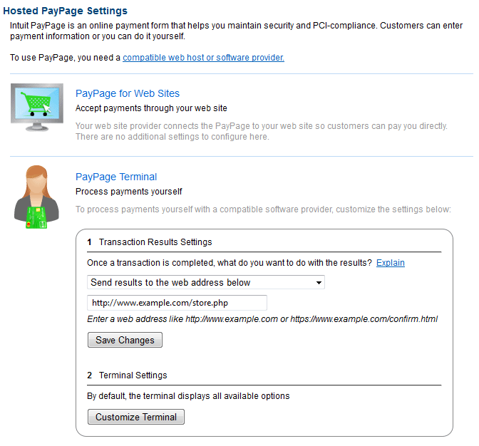 - Go here to configure your Hosted PayPage settings on Intuit's website:
