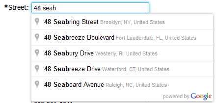 When enabled, as the customer types in the street field they will see suggested addresses: