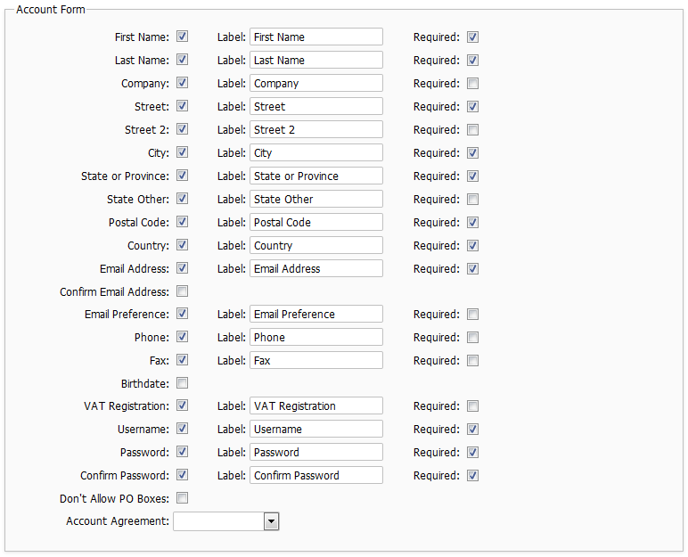The Account Agreement field allows you to assign an agreement that will appear on the account form. See the Sales Agreement topic for more information.