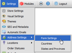 The Address Form Settings page controls which fields will be shown on account and address forms, and which of those fields will be required.