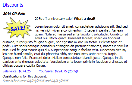 If advertising is enabled for a discount, it will appear on the product's detail page in your storefront, as in this example: