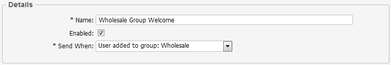 This controls when the email is sent, and is like a trigger. Possible values are: