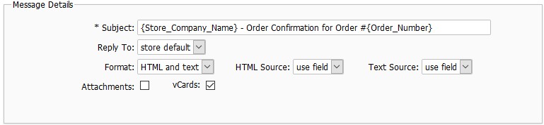 Automatic emails can be associated with an order, an order status, a user account, or a shipment. Variables can be used to include information from these records in the email message or subject. This can be used to include a user's first name in a greeting, or any other information you might want to include. Variables must be included inside a set of braces, as in this example: