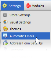 Each automatic email has a corresponding record in your control panel, used to control the email. You can view the settings by clicking the Automatic Emails menu link in the control panel: