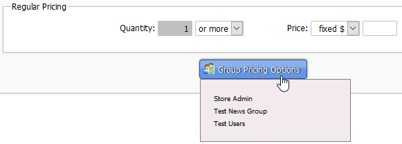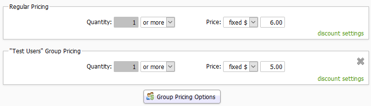 To specify pricing for a particular group, click the button, select the group, and you'll see a new pricing box for that group: