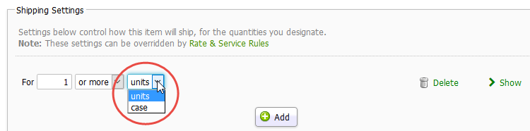 When selling in sets, you'll be able to Specify your shipping settings based on Set Name (unit):