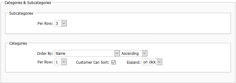 This field controls how many top level categories will be shown per row in the Product Catalog content area of your storefront page.