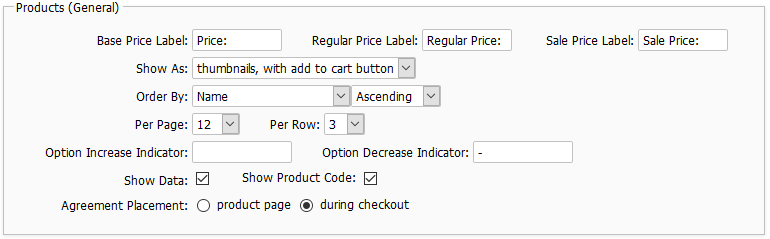 This field controls how products will appear by default when a category is clicked. The setting can be overridden at the category record level.