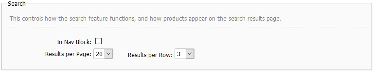 By default the search feature appears in your header. On small screens it appears at the top of the mobile navigation. Checking this field will make the search field also appear inside the Product Catalog nav block.