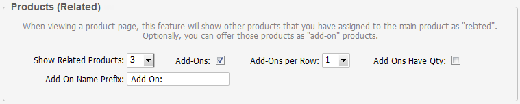 Related products can be configured to be offered as "add-on products". Add-on products act like options for another product. For example, you may have a phone product and wish to offer other products as add-ons, such as chargers, cases, etc...