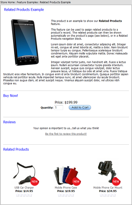 The Related Products feature allows you to associated related products to a product. Those related products can then be shown to your customer when they view the product's page in your store.