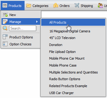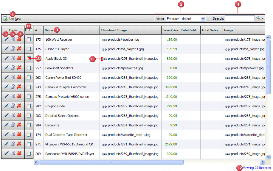 To view records, you will be clicking on different links in the menu system. For example, to view your products, click this link: